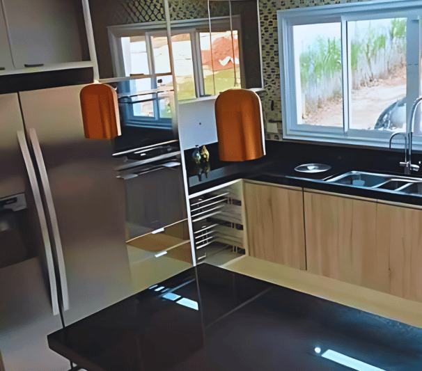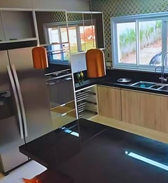 Nossa equipe de especialistas em móveis planejados mergulhou de cabeça nesse desafio e o resultado é simplesmente incrível. Criamos uma cozinha compacta que não apenas atende às necessidades práticas do dia a dia, mas também encanta com seu design moderno e elegante.